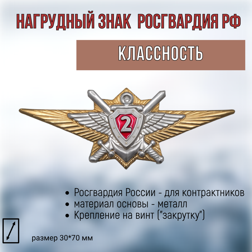 Нагрудный знак классность Росгвардия для контрактников 2 класс