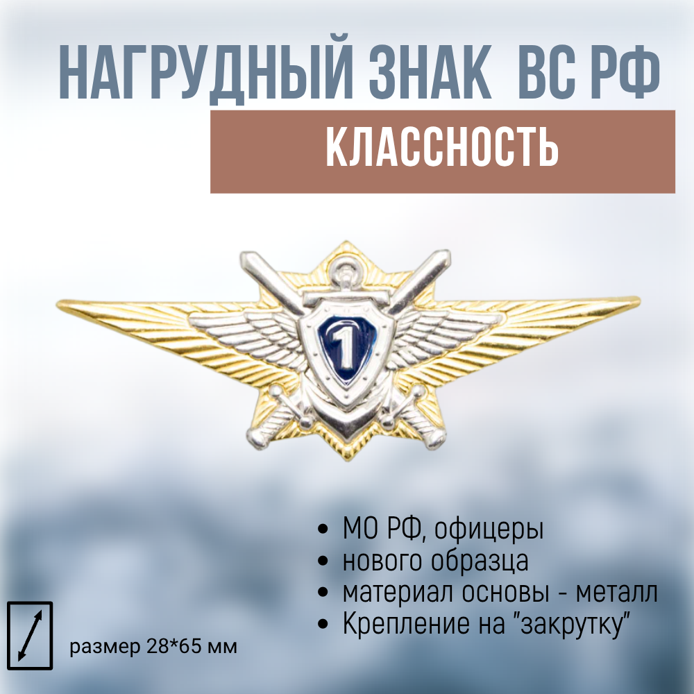 Нагрудный знак классность Нового. обр ВС.РФ. офицерский - 1 (синий)