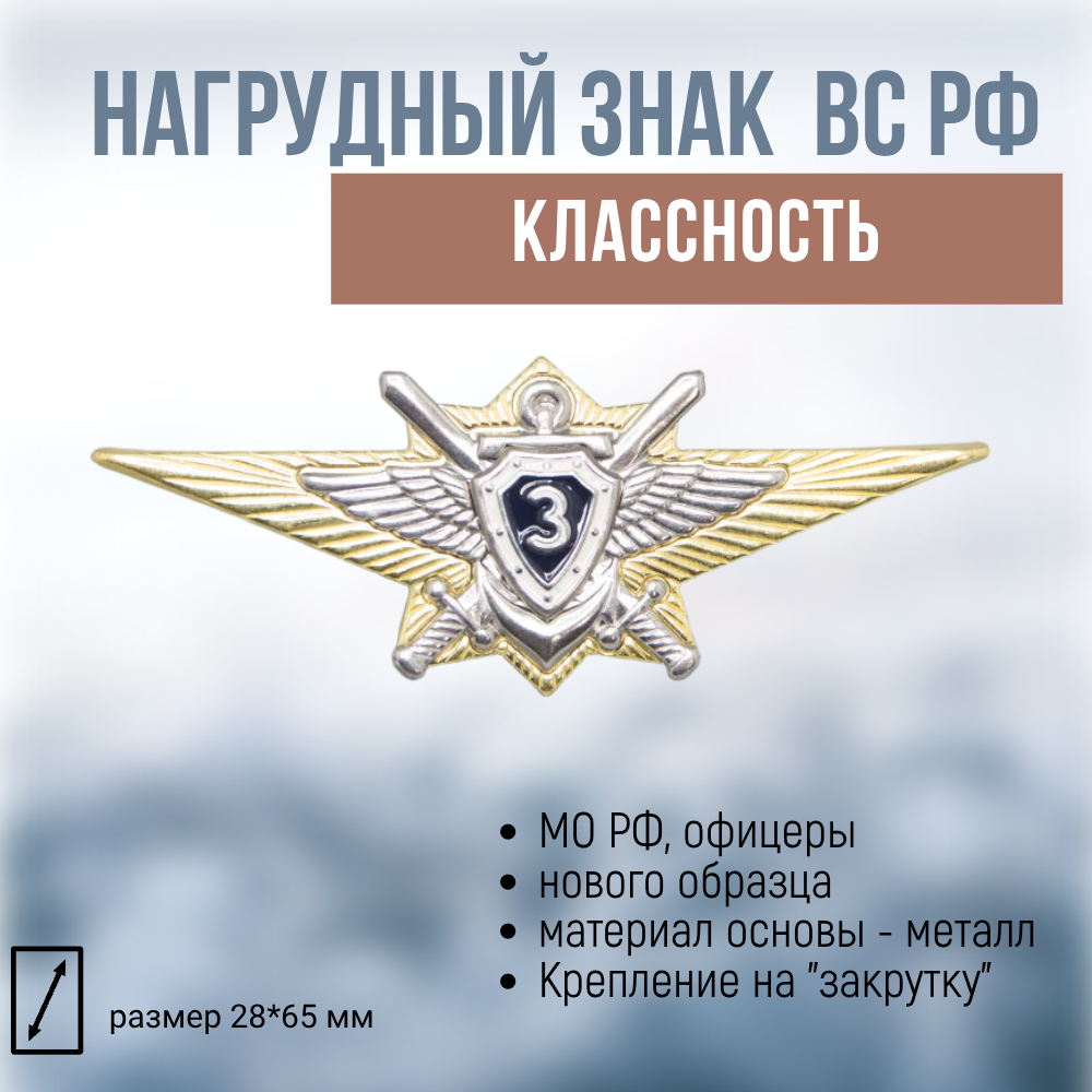 Нагрудный знак классность Нового. обр ВС.РФ. офицерский - 3 (синий)