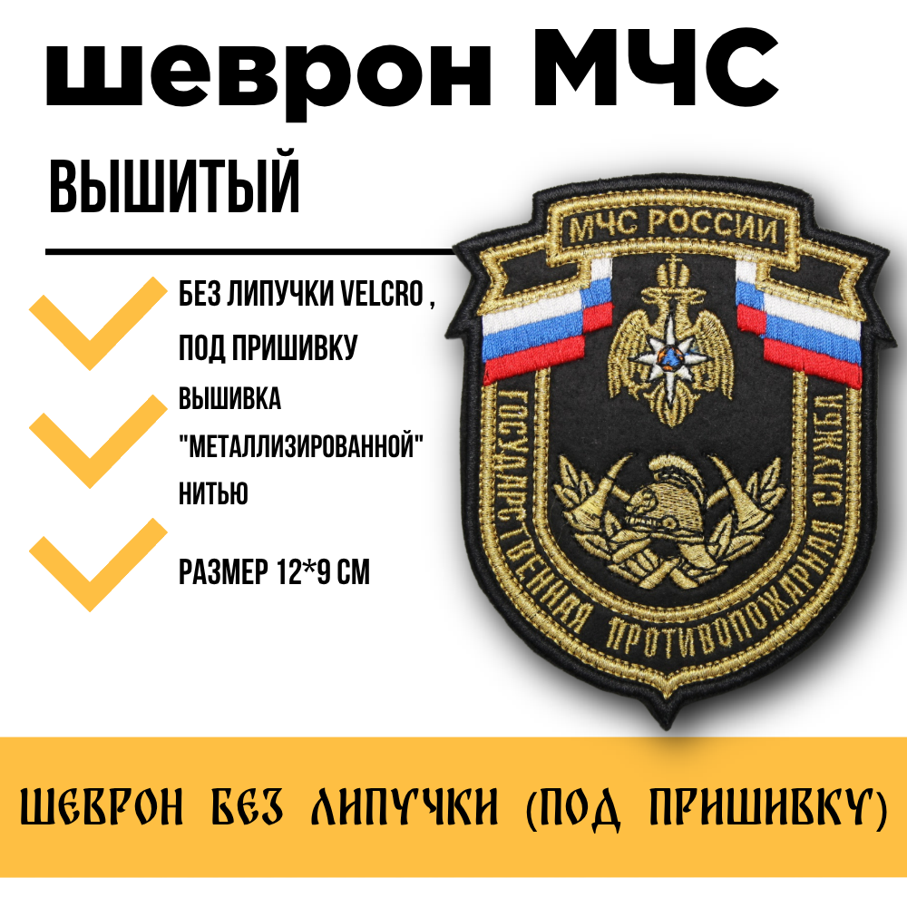 - Шеврон вышитый МЧС России Государственная противопожарная служба (металл) без липучки