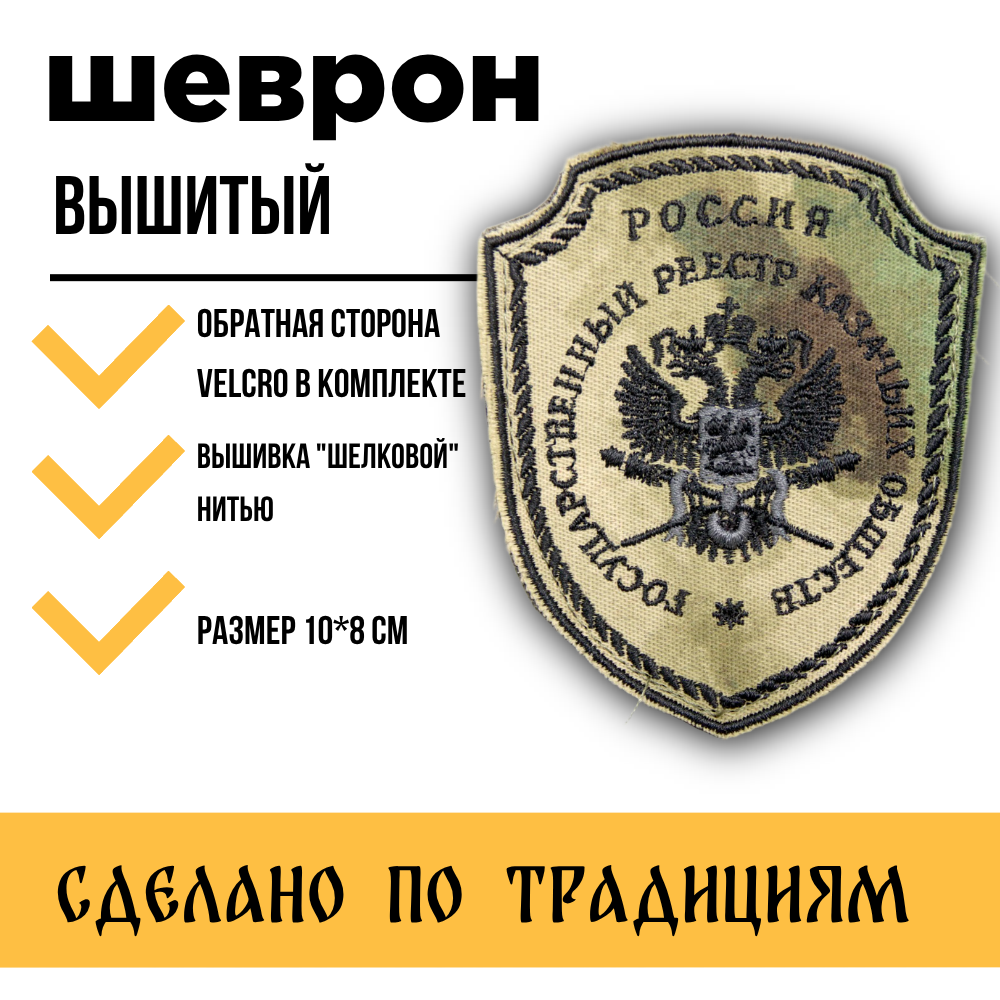 - Шеврон Госреестр казачьих обществ КО вышитый Малый , цвет Степь (черный кант) на липучке 9см-8см